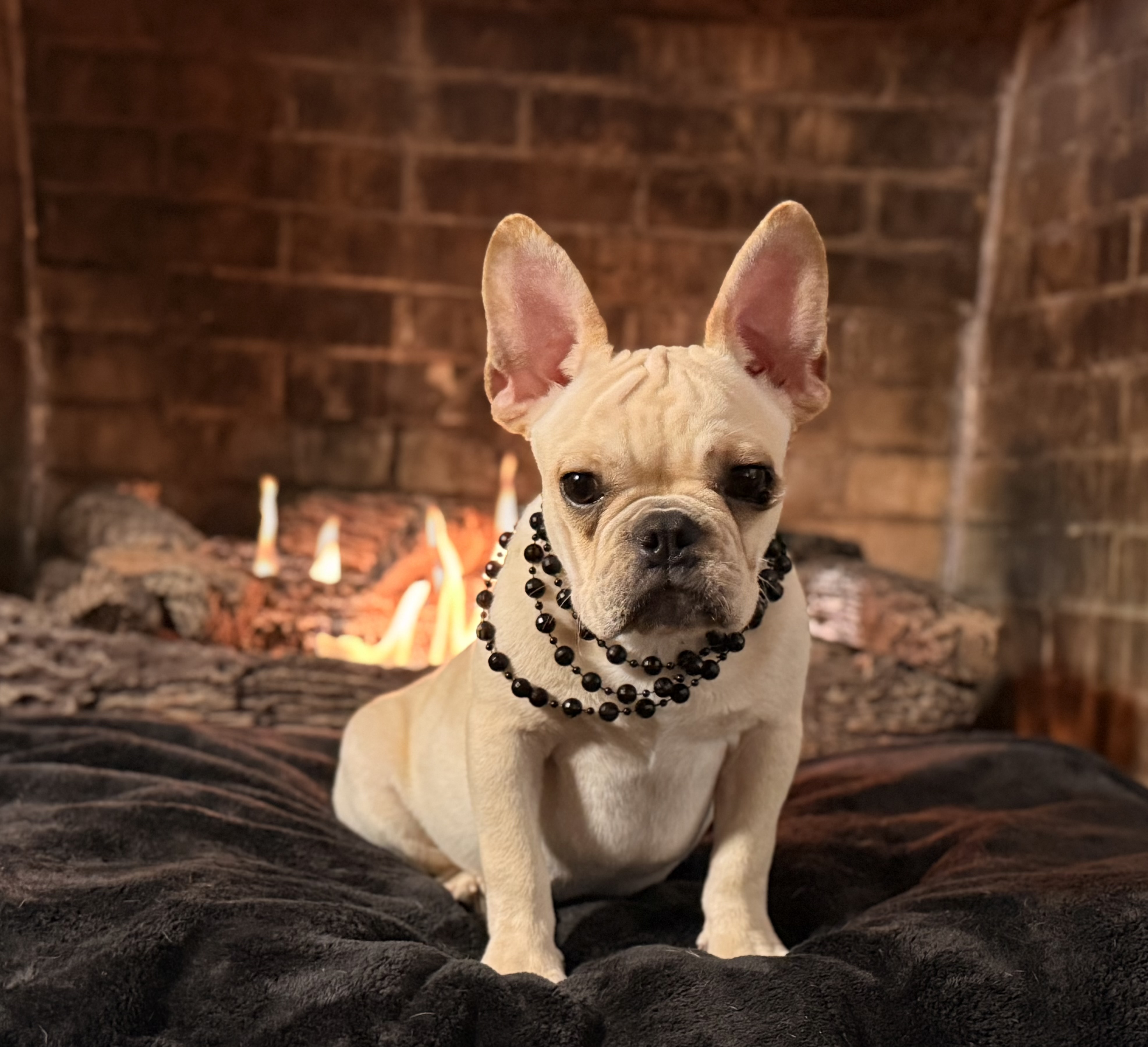 Meet Koda, the charming French Bulldog who is ready to steal your heart and claim the best spot on your sofa. With those soulful eyes and iconic ears, Koda is the epitome of canine elegance and playful companionship. Whether he’s accessorizing with his favorite beads or curling up by a warm fire, he brings a sophisticated yet cozy vibe to any home.