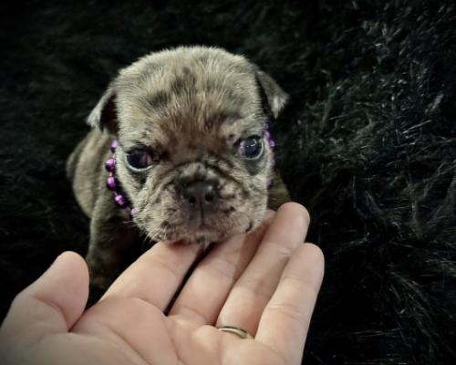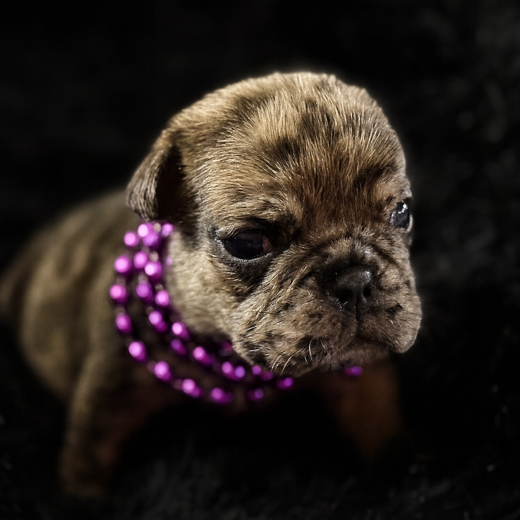 Meet Ally, a tiny girl with a show-stopping merle coat and a vibrant personality waiting to emerge. French Bulldogs are the ultimate companion—low-energy, quiet, and easily fit into apartment life. Ally promises an abundance of love and a lifetime of hilarious charm. Don't miss your chance to own this rare, adorable sweetheart. She's ready to be your everything!