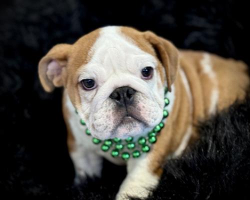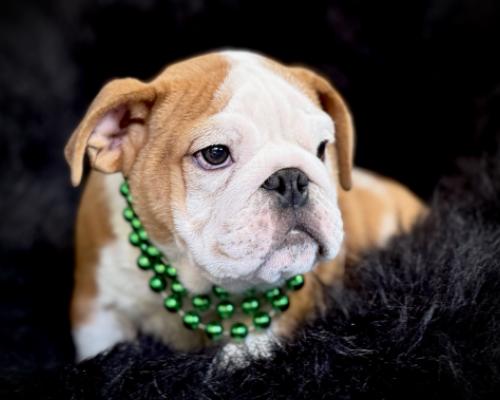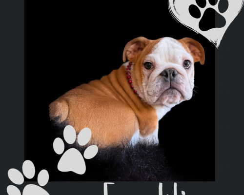 Meet Franklin, the handsome English Bulldog puppy ready to steal your heart! This little charmer has a wonderfully wrinkly face and a playful, cheerful personality. Franklin is eager to be your loyal companion and biggest cuddler. He’s looking for his forever family to start a lifetime of fun adventures with. Adopt this sweetheart today!