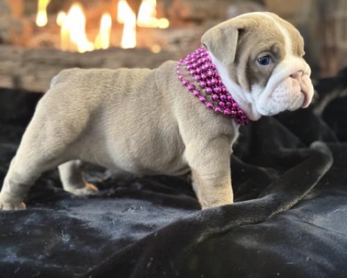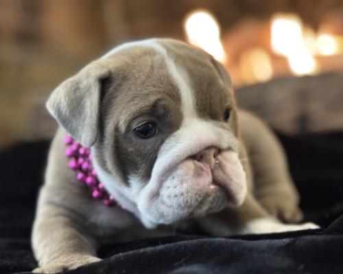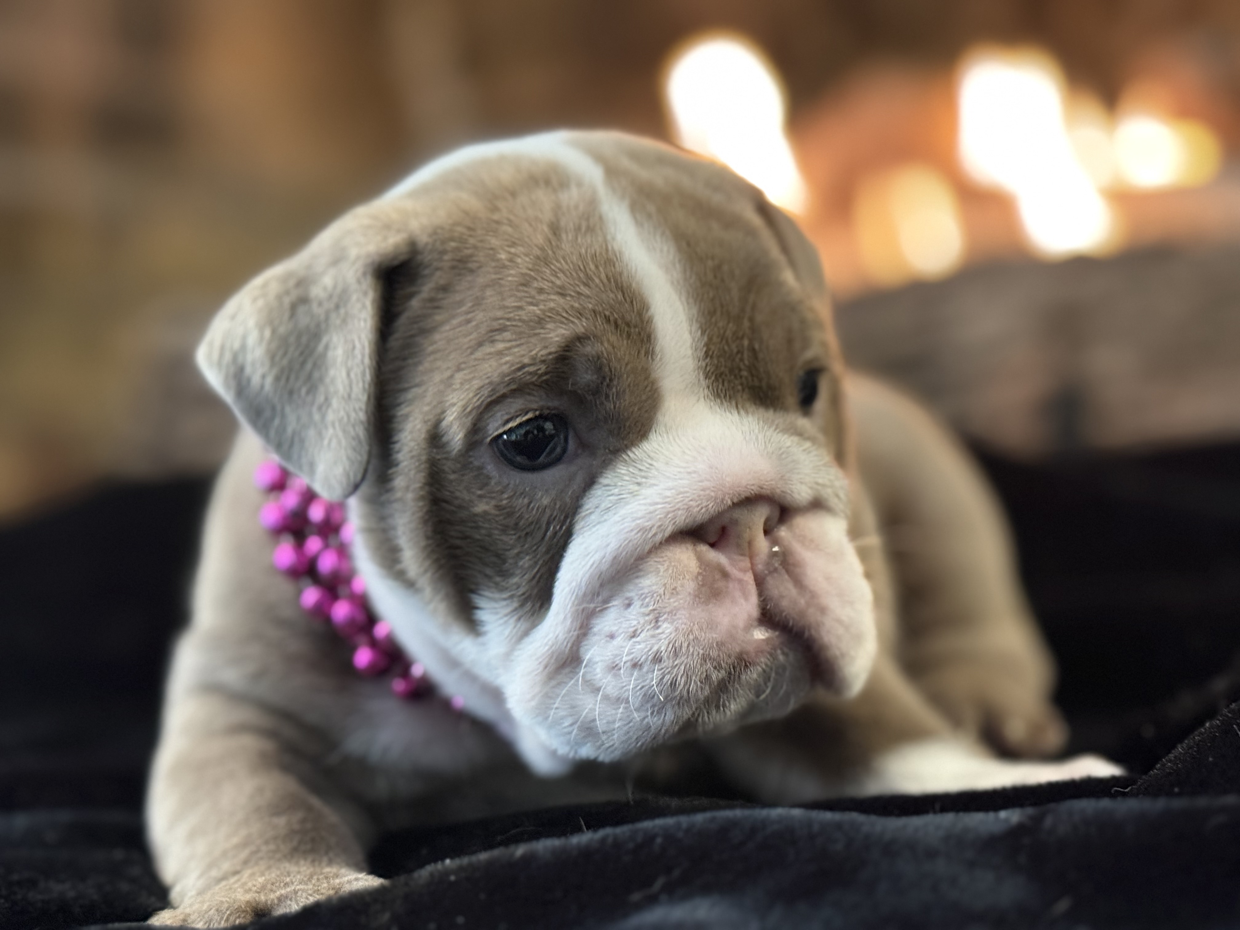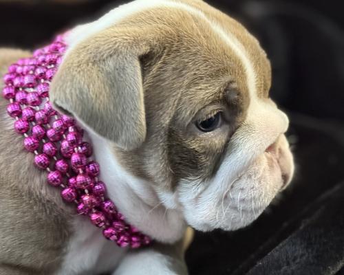Meet Princess, the reigning sovereign of snuggles! This adorable English Bulldog puppy is the perfect blend of regal charm and chunky, velvet-soft rolls. With her soulful eyes, distinctive markings, and that unmistakable "bulldog pout," she is guaranteed to steal the spotlight in any home.
