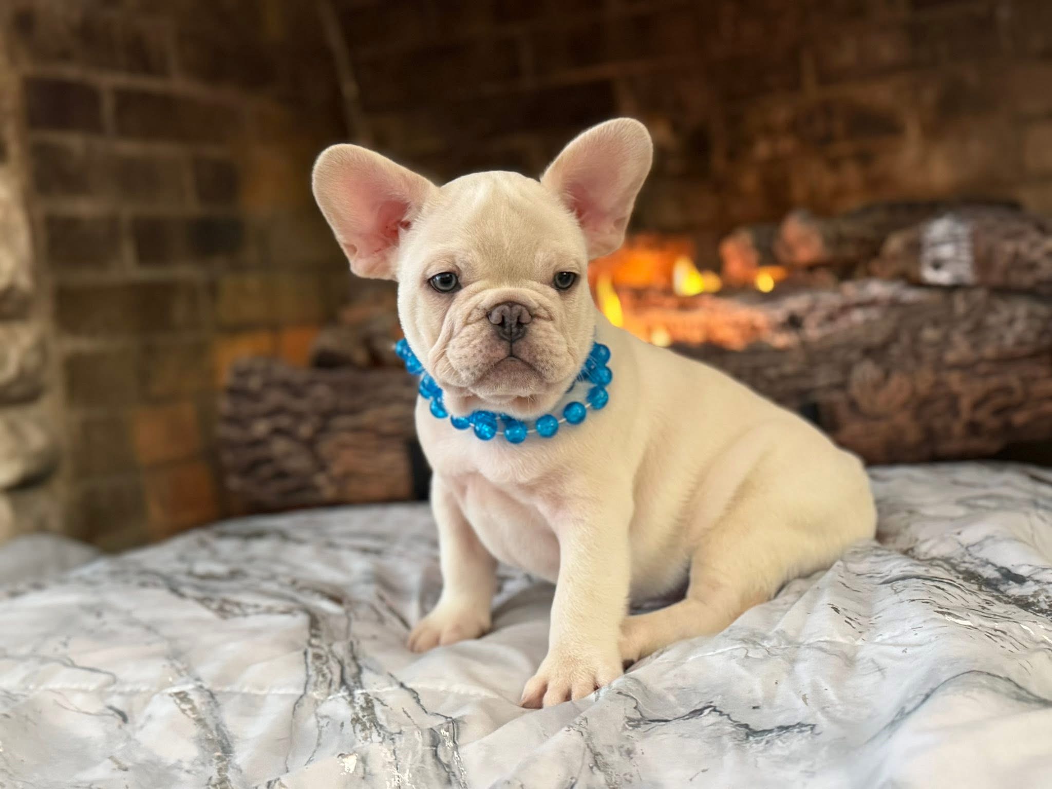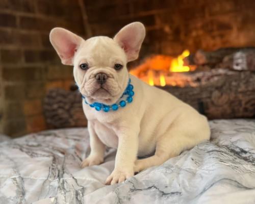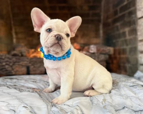 This adorable French Bulldog puppy, Bentley, is a rare find with his striking cream-white coat and soulful blue eyes. He's a compact bundle of love and charm, perfect for cuddles and companionship. Bentley is playful, well-socialized, and ready to bring endless joy and laughter to his forever home. Don't miss the chance to welcome this sweet boy into your family!