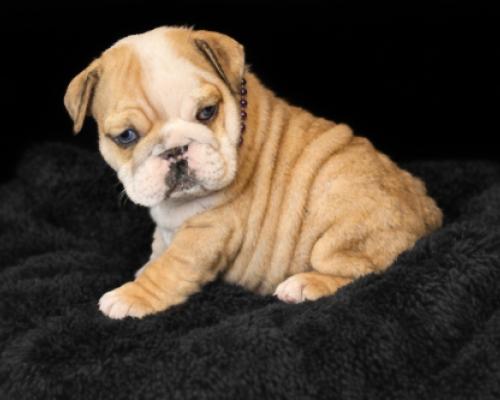 Meet Macie, the absolute crown jewel of English Bulldog puppies! With her striking, soul-piercing blue eyes and those iconic, velvety wrinkles, she is a true "showstopper" who is guaranteed to turn heads wherever she goes. Her unique fawn-and-white coat is as soft as it is beautiful, making her the ultimate cuddle companion for your lazy Sunday afternoons.