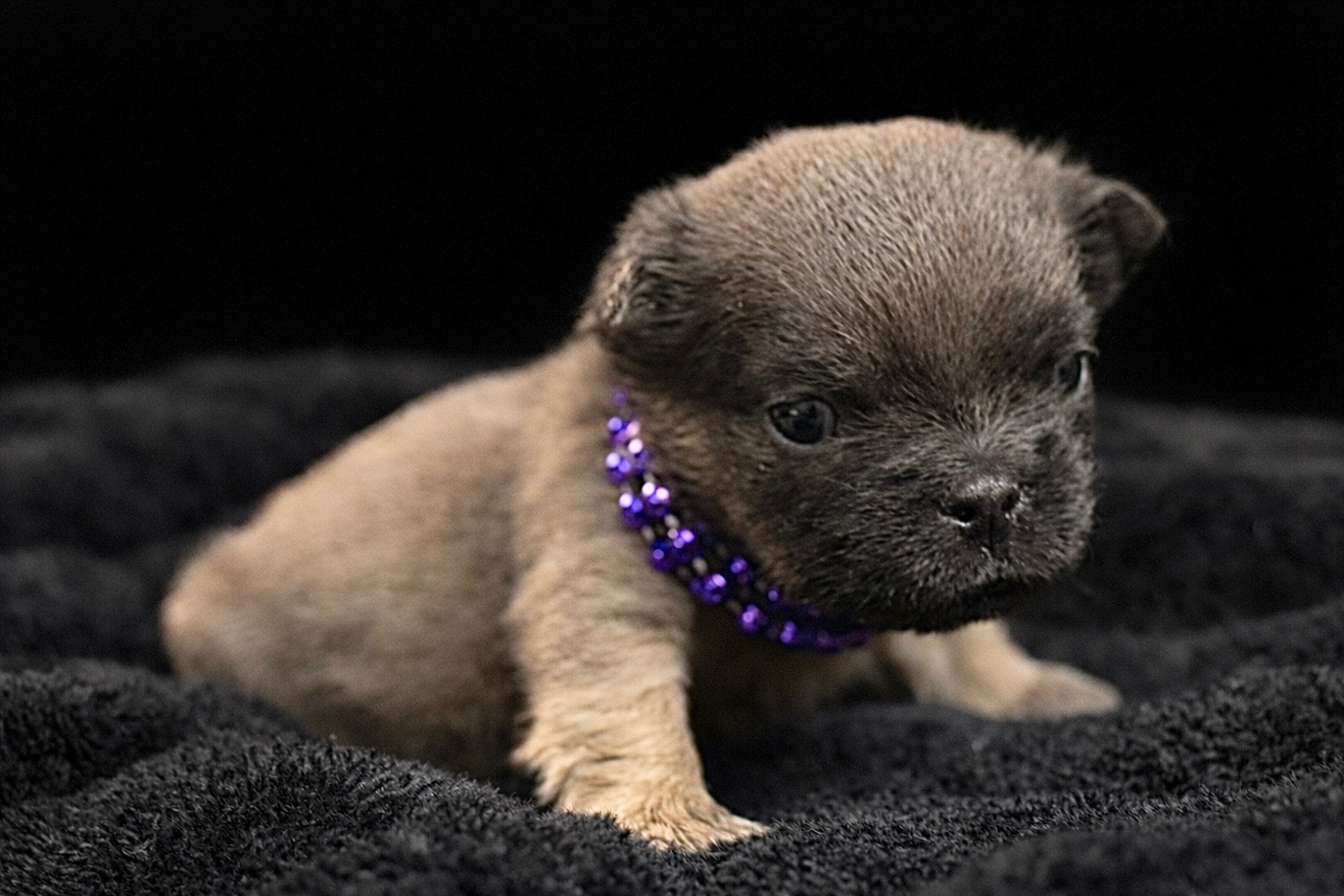 This puppy is curious, affectionate, and loves gentle playtime, cuddles, and exploring their surroundings. Their compact, muscular build is typical of the French Bulldog breed, and they are expected to maintain a healthy adult weight with proper care.