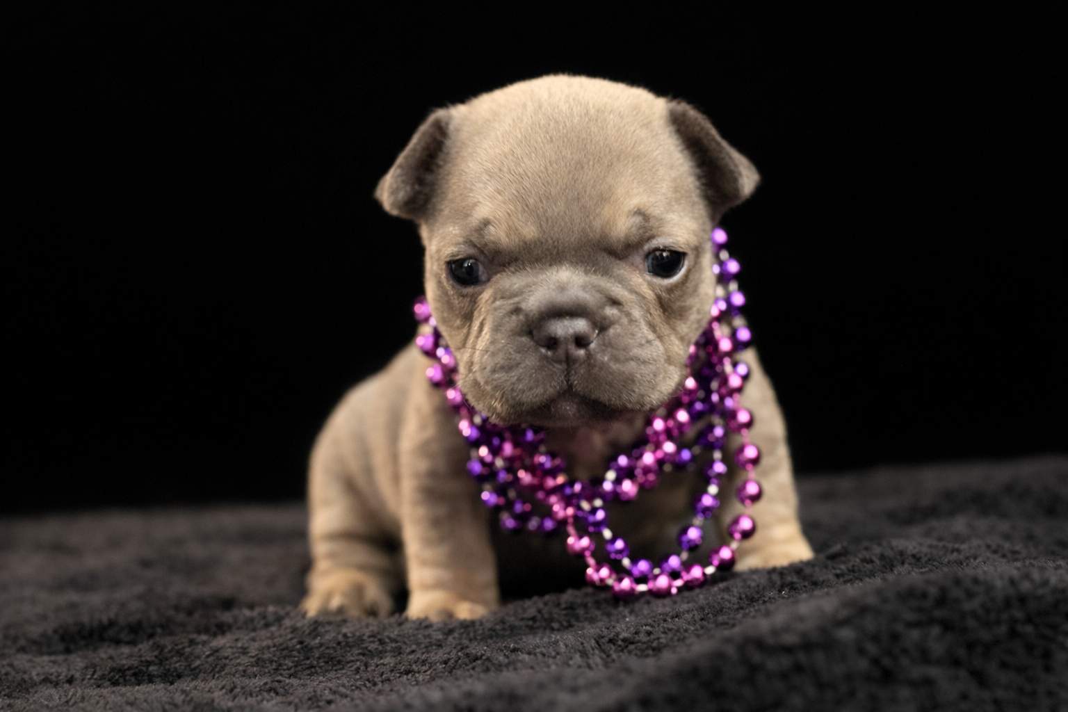Meet Chaylee, the ultimate definition of "pretty in purple." This stunning French Bulldog puppy is ready to steal your heart and claim the best spot on your sofa. With her unique, velvety lilac coat and those soulful, expressive eyes, she isn’t just a pet—she is a high-fashion companion and a loyal best friend wrapped in one adorable package.