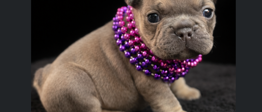 Chaylee is as sweet as she is stylish. Whether she’s rocking her signature beads or snuggling up for a nap, her calm and affectionate temperament makes her the perfect addition to any loving home. Frenchies are world-renowned for their charming "clownish" personalities, and Chaylee is no exception; she’s sure to keep you smiling with her playful antics and gentle spirit.