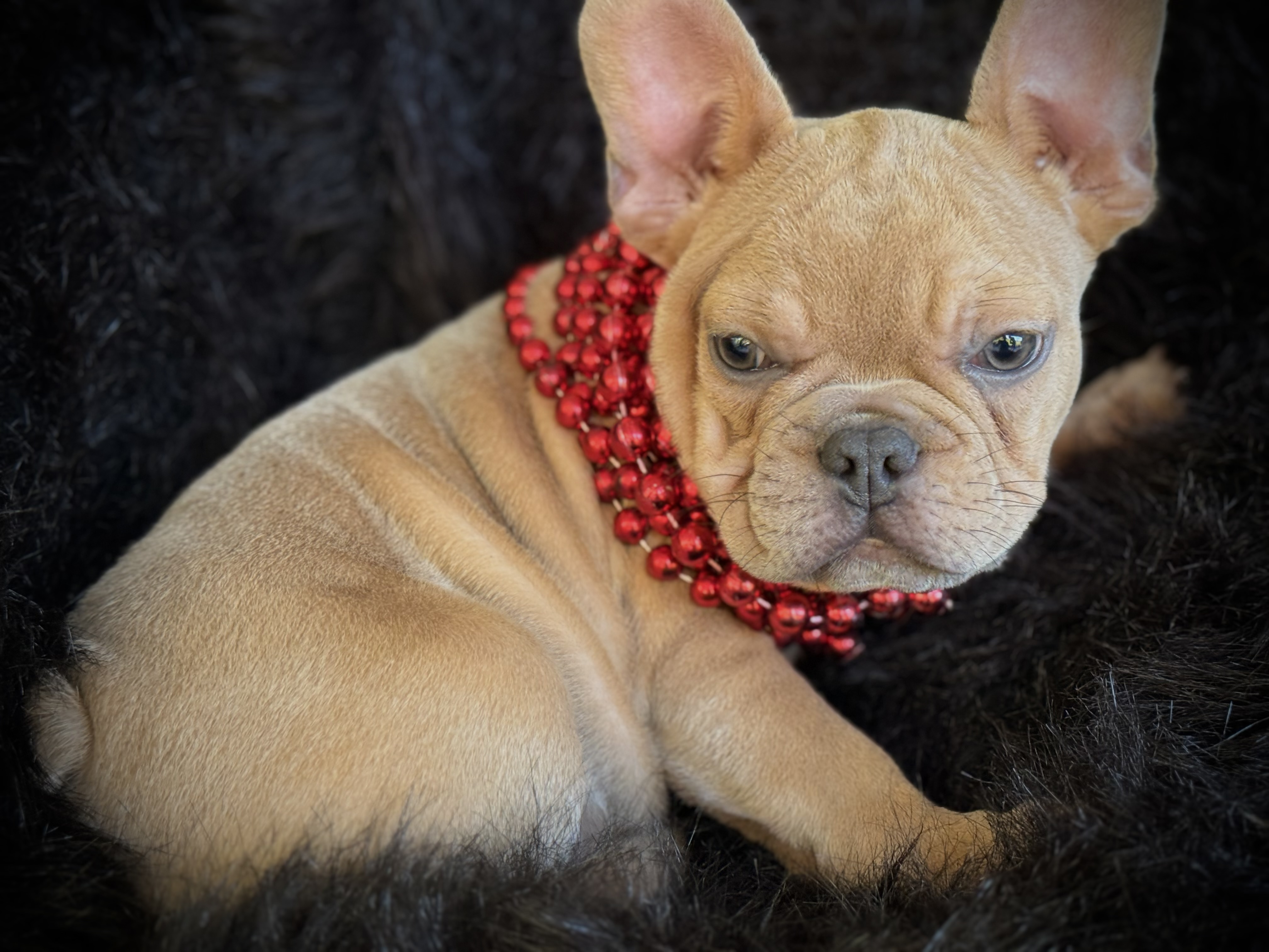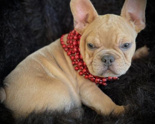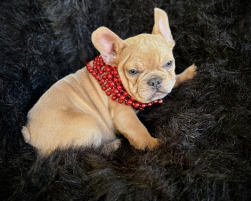 Meet Sammy, an incredibly adorable, solid fawn French Bulldog puppy.