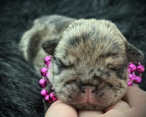 Meet Ally, a tiny girl with a show-stopping merle coat and a vibrant personality waiting to emerge. French Bulldogs are the ultimate companion—low-energy, quiet, and easily fit into apartment life. Ally promises an abundance of love and a lifetime of hilarious charm. Don't miss your chance to own this rare, adorable sweetheart. She's ready to be your everything!