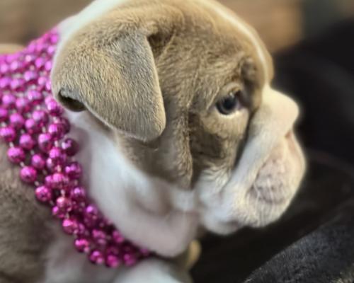 Meet Princess, the reigning sovereign of snuggles! This adorable English Bulldog puppy is the perfect blend of regal charm and chunky, velvet-soft rolls. With her soulful eyes, distinctive markings, and that unmistakable "bulldog pout," she is guaranteed to steal the spotlight in any home.