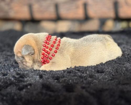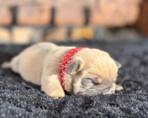 Meet Archer, a little champion who is ready to take aim and hit the bullseye of your heart! This stunning pup features a beautiful, soft sandy-colored coat paired with a sweet, peaceful expression that radiates pure innocence. Draped in his bold red beads, Archer is a tiny bundle of charm and handsomeness, just waiting to become the center of your world.